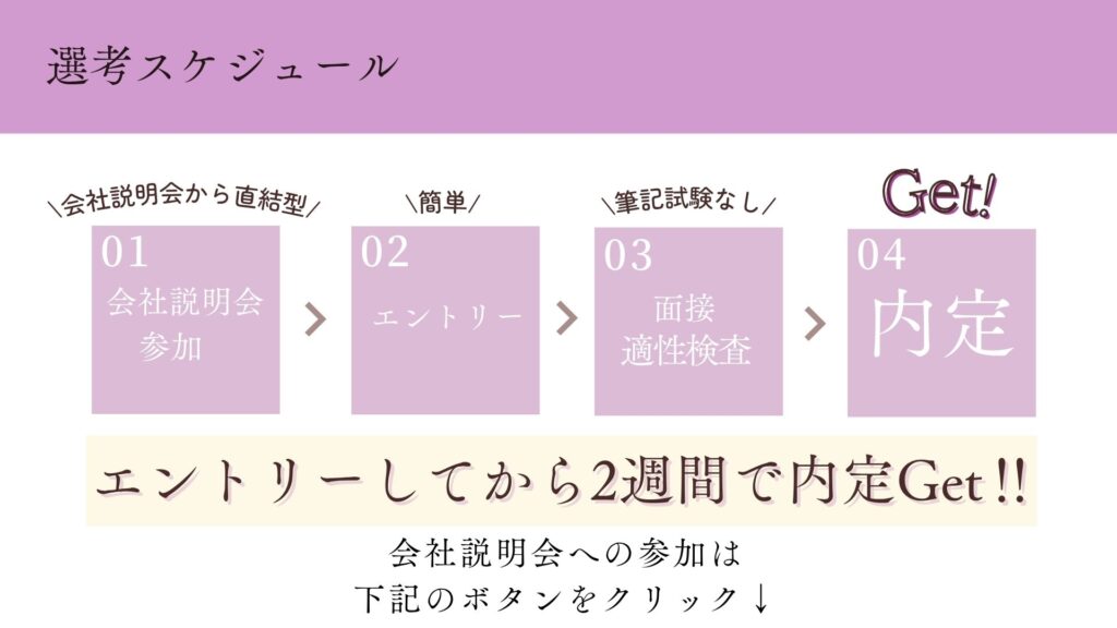 エントリーから内定まで最短2週間!